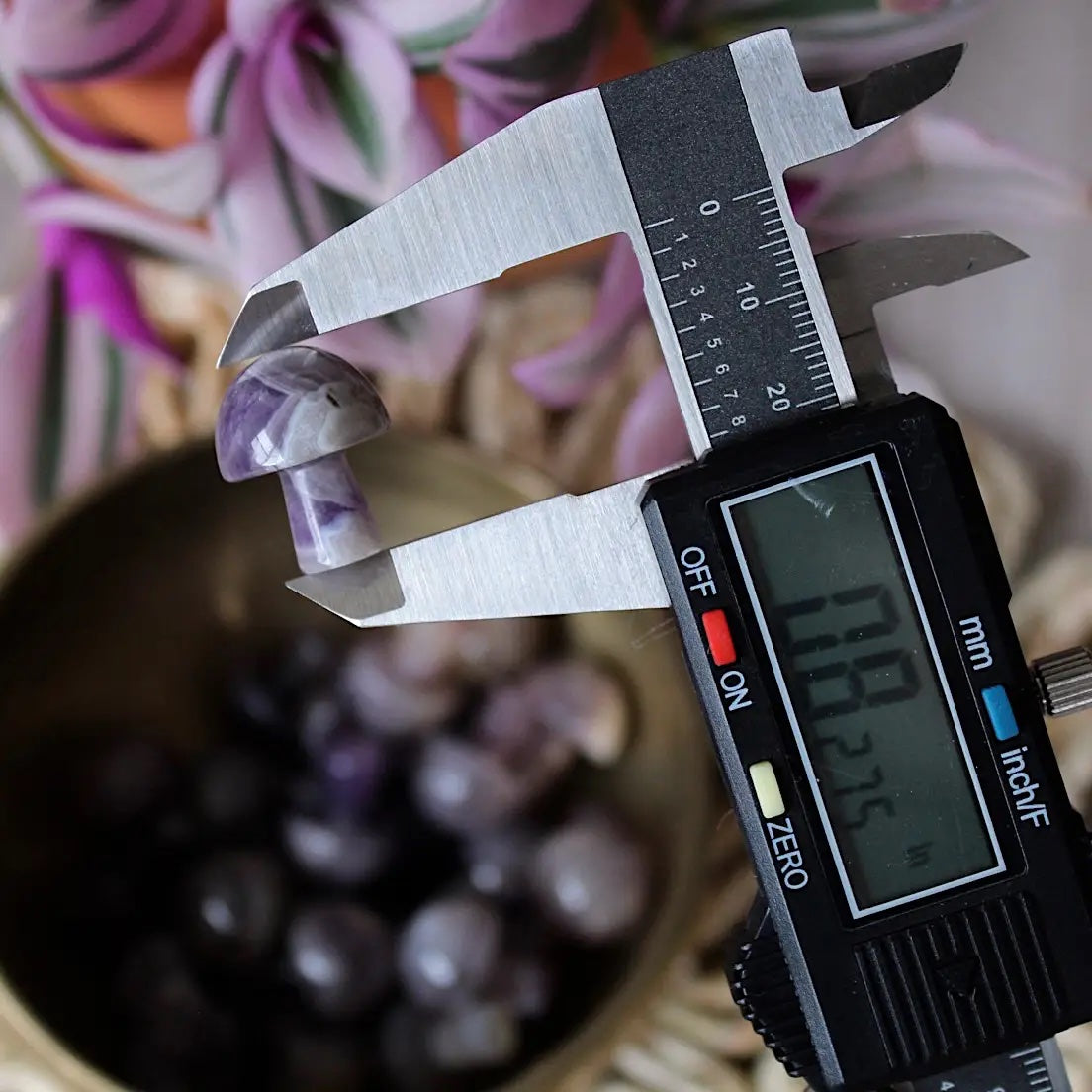 The mushroom is a symbol for kundalini energy and enlightenment. The stalk represents the spine, and the cap represents the opened crown chakra. Enjoy holding them in your palm, carrying them in your pocket, adding them to a house plant, fairy garden, fish tank, or terrarium. Create your own magik with them — use multiples in a healing crystal grid or altar set up.