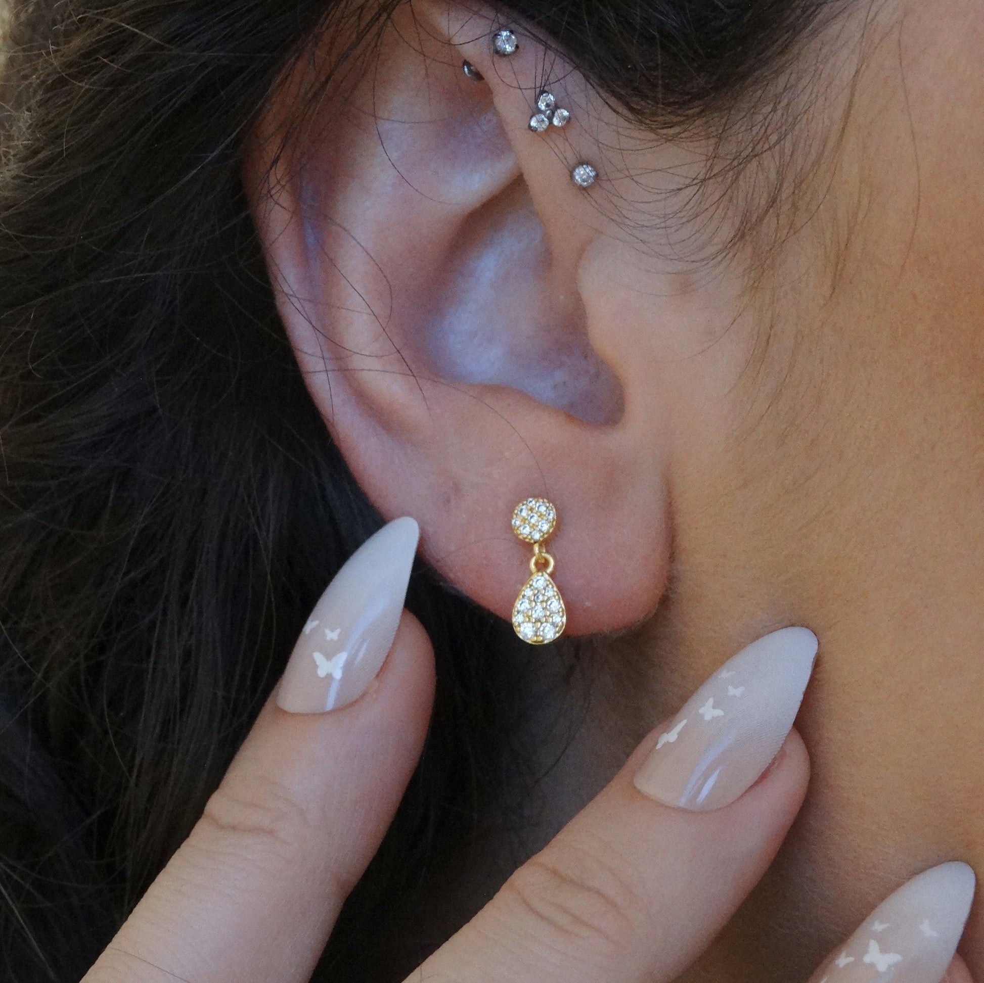 Dazzle effortlessly at your evening event with these elegant stone-crusted teardrop earrings. Designed to complement both formal and modern styles, their shimmering profile adds a touch of timeless charm.